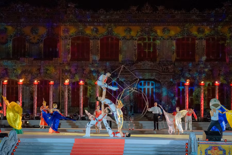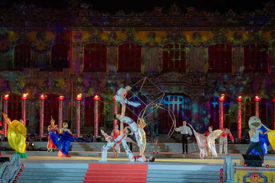 | Không gian rộng lớn, hoành tráng tại Hoàng cung Huế với nhiều tiết mục văn nghệ đặc sắc. |