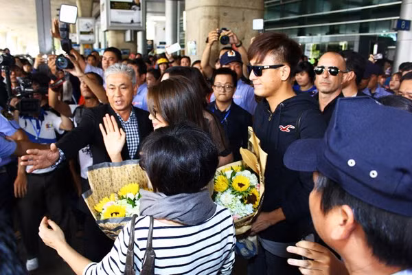 Cả hai diện trang phục đơn giản, và dù khá mệt mỏi sau chuyến bay nhưng trước sự chào đón của khán giả Việt, hai diễn viên của TVB luôn nở nụ cười thân thiện và liên tục vẫy tay chào fan.