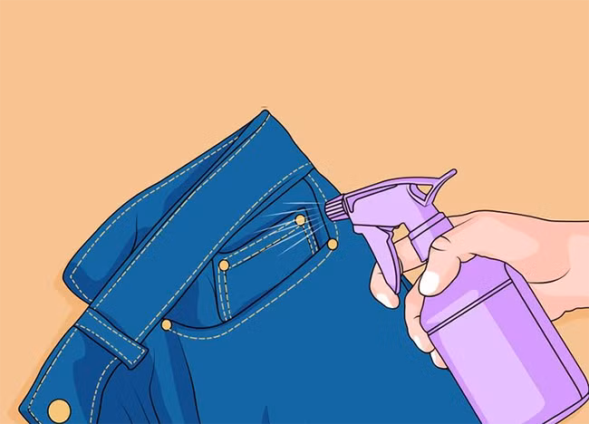 Để khắc phục trình trang quần chật, hãy tận dụng nước ấm. Bạn đổ nước ấm vào bình xịt dạng nhỏ. Sau khi trải quần ra mặt phẳng, bạn đem bình xịt, xịt lên quần. Vừa xịt vừa dùng tay kéo dãn quần, lặp lại thao tác này nhiều lần là quần jeans sẽ rộng hơn trước.