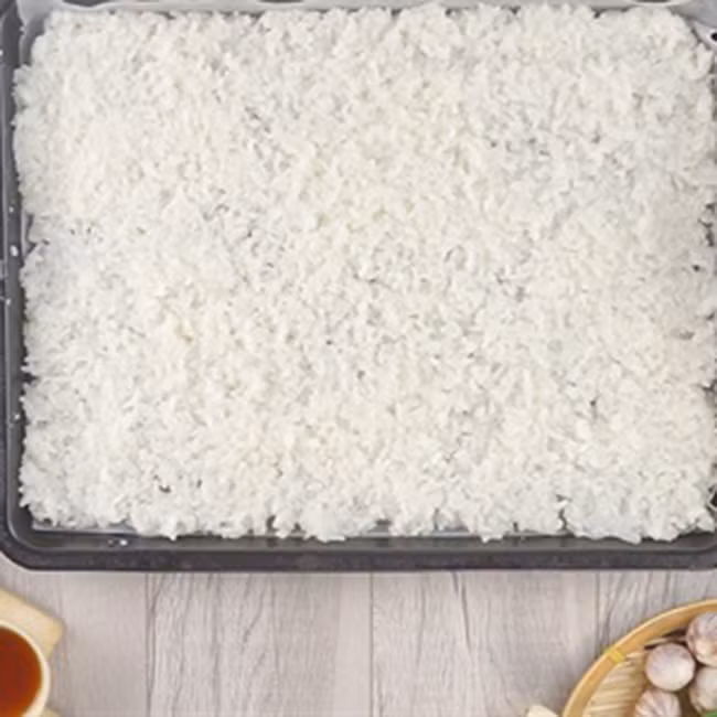 Với cách làm cơm cháy chà bông cực đơn giản, chỉ cần lò nướng là cơm cháy sẽ khô rang mà không cần phơi nắng không đảm bảo vệ sinh.