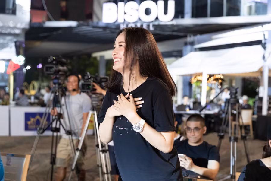 Đặc biệt, Mai Phương Thúy còn khiến sân khấu buổi tổng duyệt trở nên hào hứng khi dẫn đầu dàn thí sinh Miss World Việt Nam catwalk trên sân khấu, toàn bộ không gian xung quanh dường như sáng bừng vì những sải bước đầy tự tin và rạng rỡ của nàng hậu cùng nhóm thí sinh.