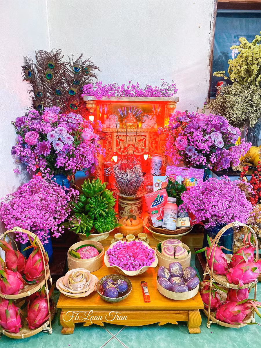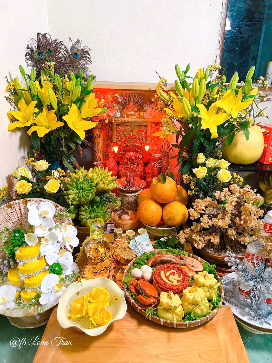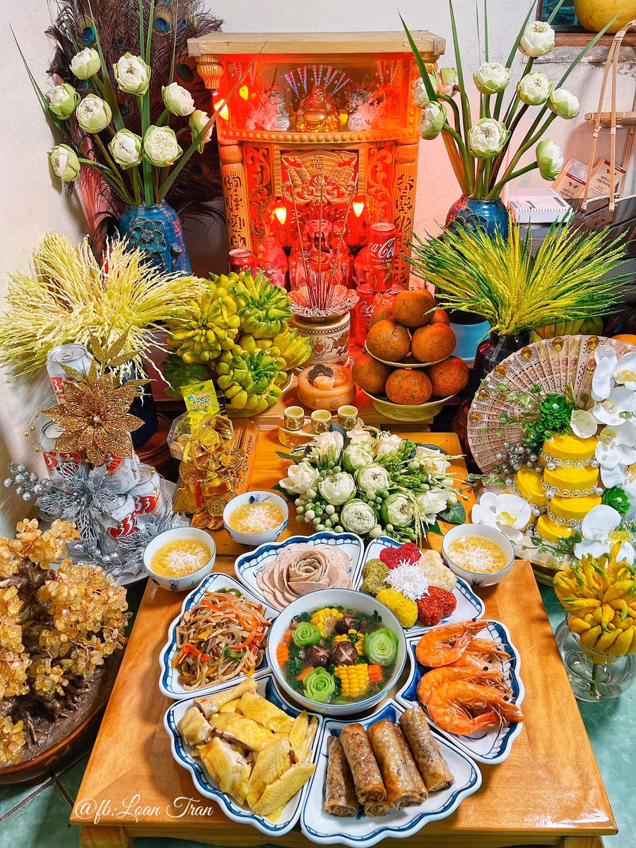 Với chị Trần Loan (33 tuổi, sống tại TP Hòa Bình), mâm cỗ cúng Thần Tài được chăm chút kĩ lưỡng hơn bao giờ hết. Chị Loan chia sẻ, vào ngày mùng 1 hay 15 mỗi tháng, chị thường bày mâm cỗ thắp hương Thần Tài. Đặc biệt mâm cỗ ngày vía Thần Tài được chị làm trịnh trọng hơn. Những món ăn công phu được bày biện đẹp mắt với khiến nhiều người phải trầm trồ.