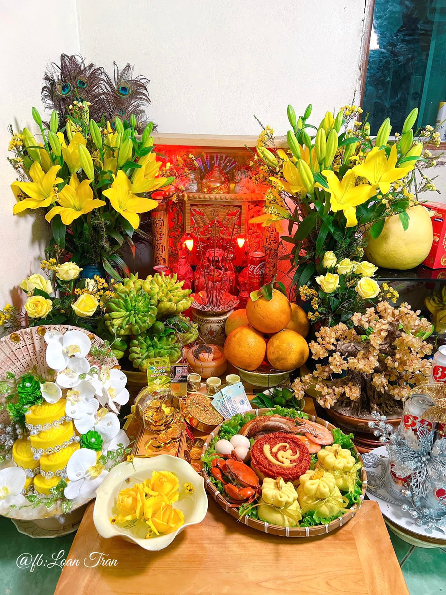 Cùng tham khảo mâm cỗ cúng Thần tài ngày mùng 1 hay 15 âm lịch hàng tháng chị Loan chuẩn bị: