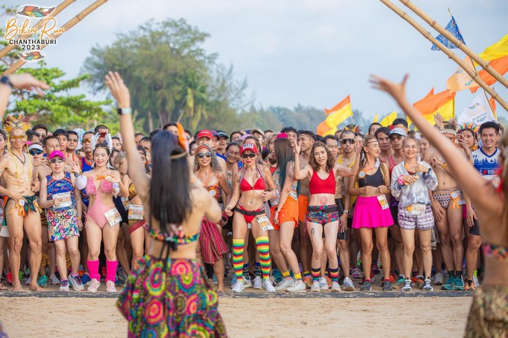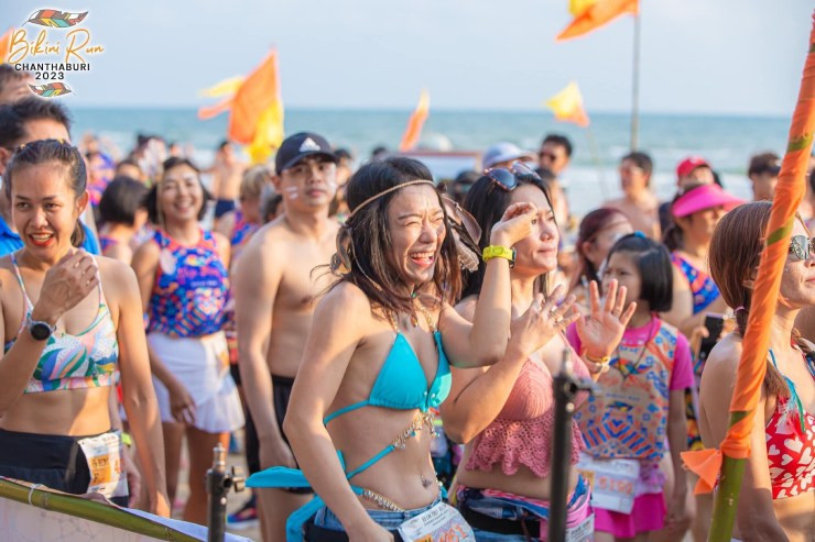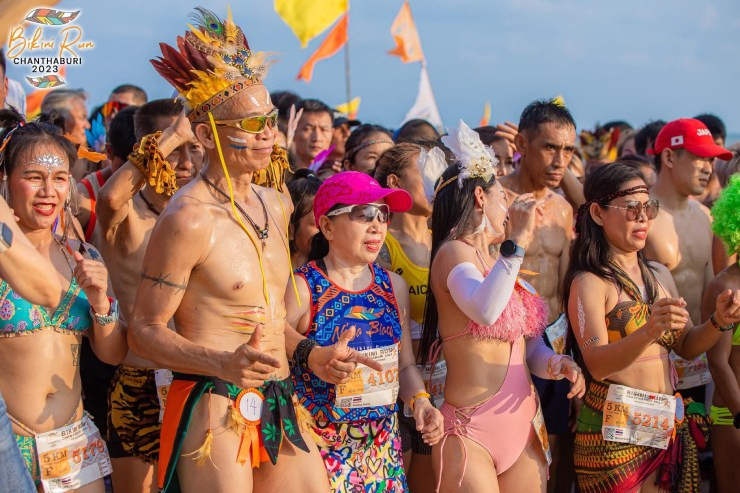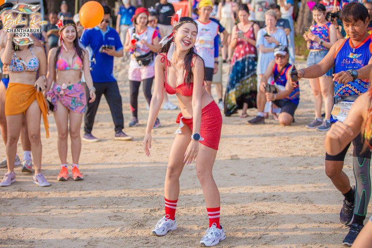 Hầu hết những người tham gia giải chạy Bikini Run Chanthaburi 2023 đều mặc những bộ đồ tắm bắt mắt (cả nữ và nam) nên bãi biển Chao Lao trở nên "nóng bỏng" hơn bao giờ hết.