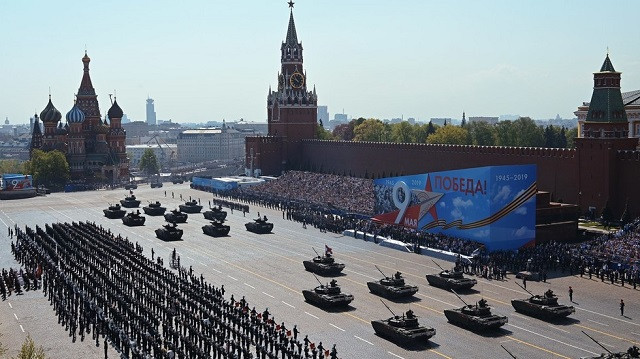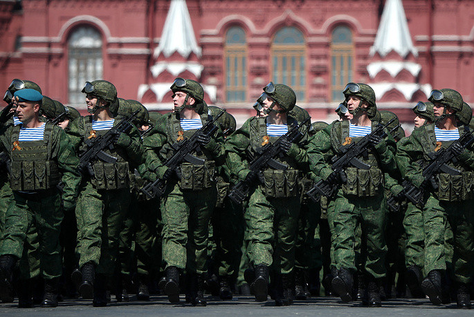 | Binh sĩ Nga diễu hành dọc Quảng trường Đỏ trong cuộc diễn tập cho cuộc diễu hành quân sự Ngày Chiến thắng ở Moscow |