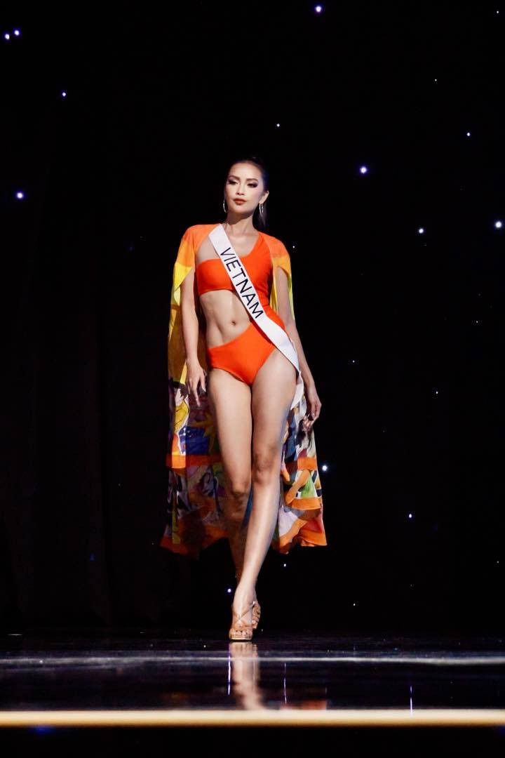 Sau đó, hơn 80 thí sinh tiếp tục bước vào phần thi trình diễn bikini. Trong phần thi này, Hoa hậu Ngọc Châu diện chiếc áo choàng được vẽ thủ công.