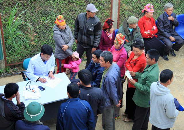 | Đông đảo người dân xã Púng Bánh đến trạm y tế xã để khám bệnh |