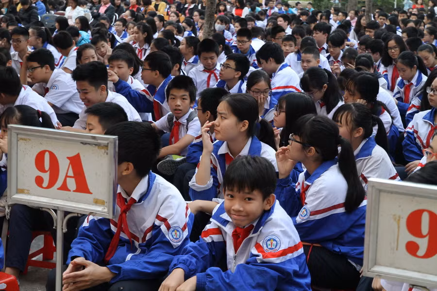 Học sinh trường THCS Ngô Quyền chăm chú lắng nghe.