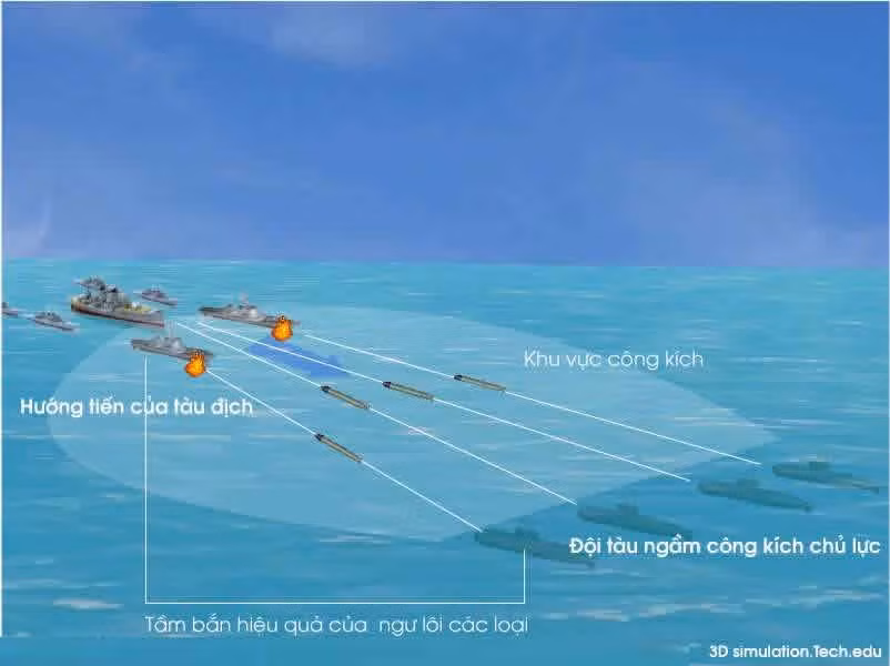 | Sơ đồ đội tàu ngầm trinh sát hỏa lực. |