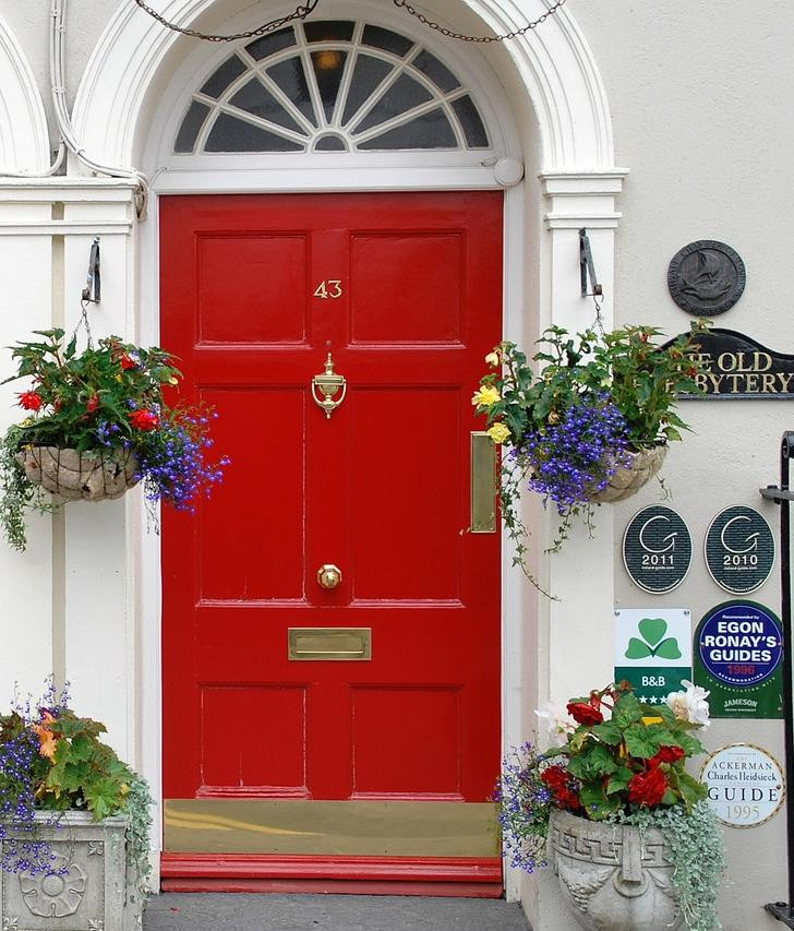Cánh cửa màu đỏ thể hiện sự tự do và chào đón. Ở Scotland, những người đã trả hết nợ thế chấp sẽ sơn cửa màu đỏ để mọi người biết.