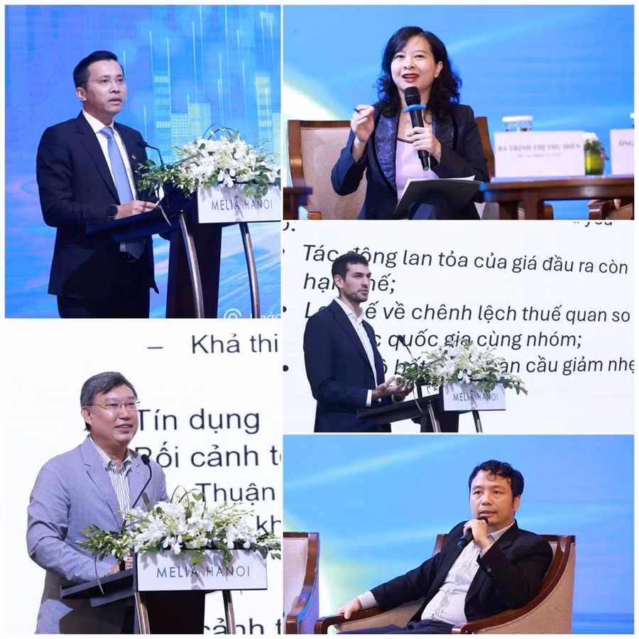 Phiên thảo luận 1 với chủ đề “Tác động của Thuế quan thương mại và Đầu tư công đến hoạt động của doanh nghiệp” có sự góp mặt của Bà Trịnh Thị Thu Hiền - Phó Cục trưởng Cục Xuất nhập khẩu - Bộ Công thương, TS. Nguyễn Tú Anh – Giám đốc nghiên cứu - Đại học VinUni, TS. Nguyễn Xuân Thành, chuyên gia kinh tế World Bank và Ban lãnh đạo MB. Các chuyên gia đã thảo luận sâu về các kịch bản thay đổi thuế quan, tác động đến từng ngành xuất nhập khẩu trọng điểm; đồng thời phân tích vai trò của đầu tư công như một động lực tăng trưởng và đề xuất cải cách thể chế nhằm thúc đẩy khu vực tư nhân.
