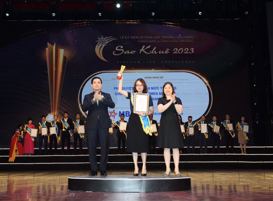 Ngày 28/4, tại Hà Nội, Hiệp hội Phần mềm và dịch vụ CNTT Việt Nam (VINASA) tổ chức lễ kỷ niệm 20 năm Giải thưởng Sao Khuê, vinh danh và trao Giải thưởng Sao Khuê 2023. Cả hai sản phẩm số của MB là Chợ ứng dụng Mini App (MB Market Place) và Tính năng Phê duyệt cấp hạn mức tự động trên BIZ MBBank phục vụ cho khách hàng doanh nghiệp siêu nhỏ đều được xướng tên ở hai hạng mục tương ứng là “Các nền tảng chuyển đổi số” và “Ngân hàng số”.