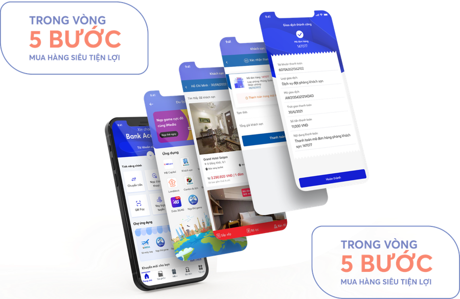 Thấu hiểu về hành vi người dùng thông qua phân tích dữ liệu, chuyên gia công nghệ của MB giúp người dùng tiếp cận đúng dịch vụ, đúng thời điểm và đúng nhu cầu. Chỉ bằng một vài thao tác đơn giản, người dùng App MBBank có thể hoàn tất thao tác mua sắm online, di chuyển, đặt vé máy bay, đặt khách sạn, ship hàng, mua voucher giải trí, ẩm thực,… cùng hê thống thanh toán bảo mật hàng đầu tại Việt Nam.