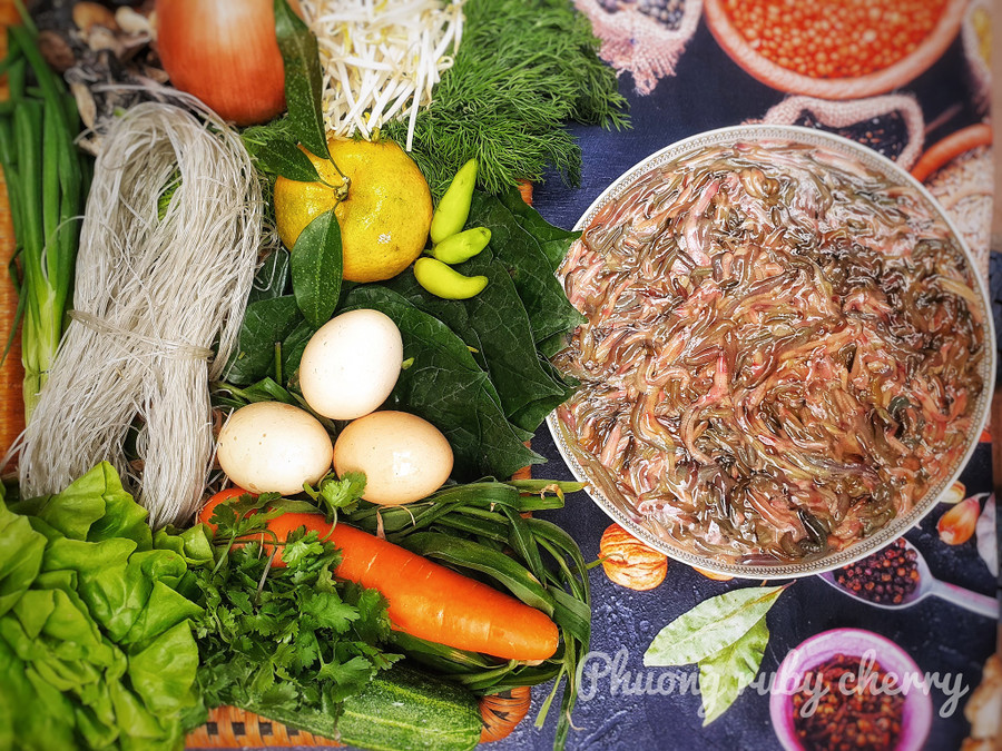 Lá lốt, lá gừng bạn rửa sạch rồi thái sợi nhỏ vừa ăn để trộn với rươi.