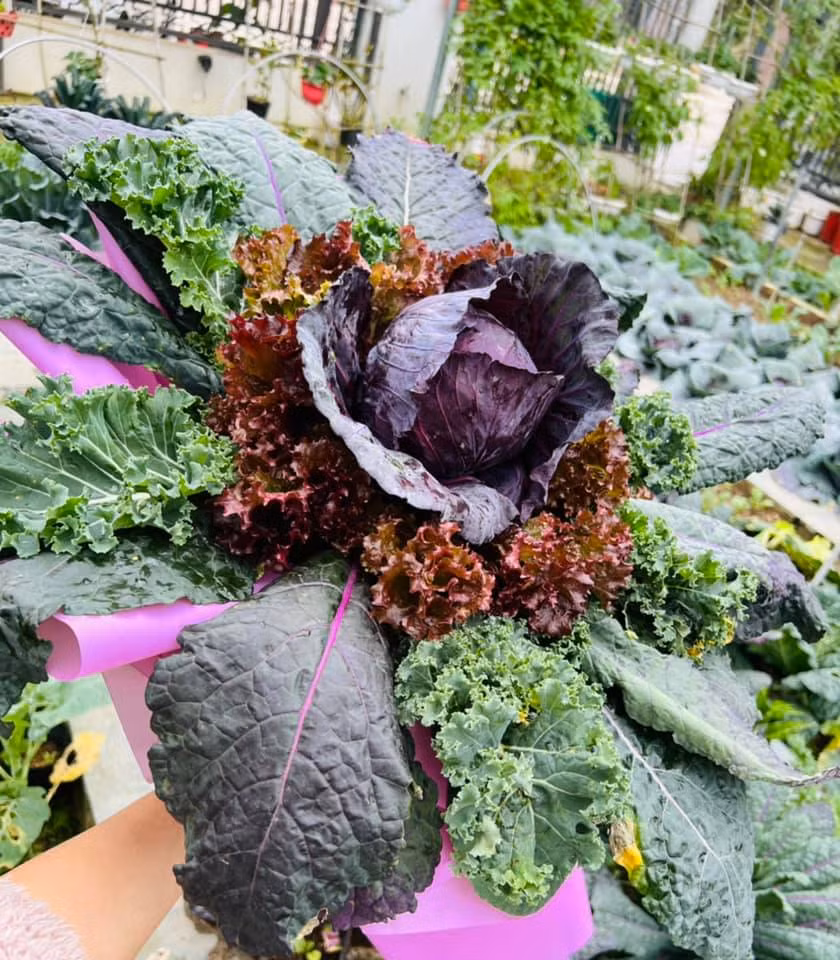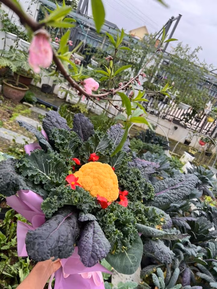 Chuẩn bị đến ngày 8/3, những bó hoa vừa đẹp vừa thơm luôn là món quà nằm trong lựa chọn hàng đầu của nhiều người. Nhưng vẻ đẹp và tuổi đời của một bó hoa lại quá ngắn, lại phải bỏ đi nên chị Yến Phương (sinh năm 1985, Quảng Ninh) nghĩ đến những bó hoa được làm từ rau củ quả trong khu vườn nhỏ để tăng phần độc đáo.