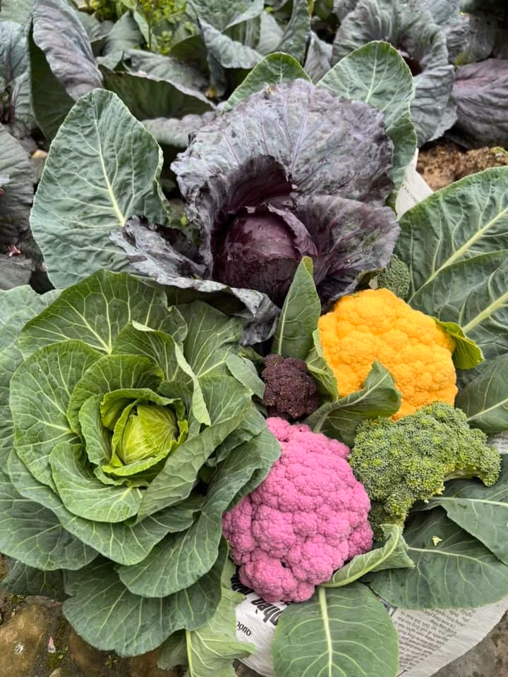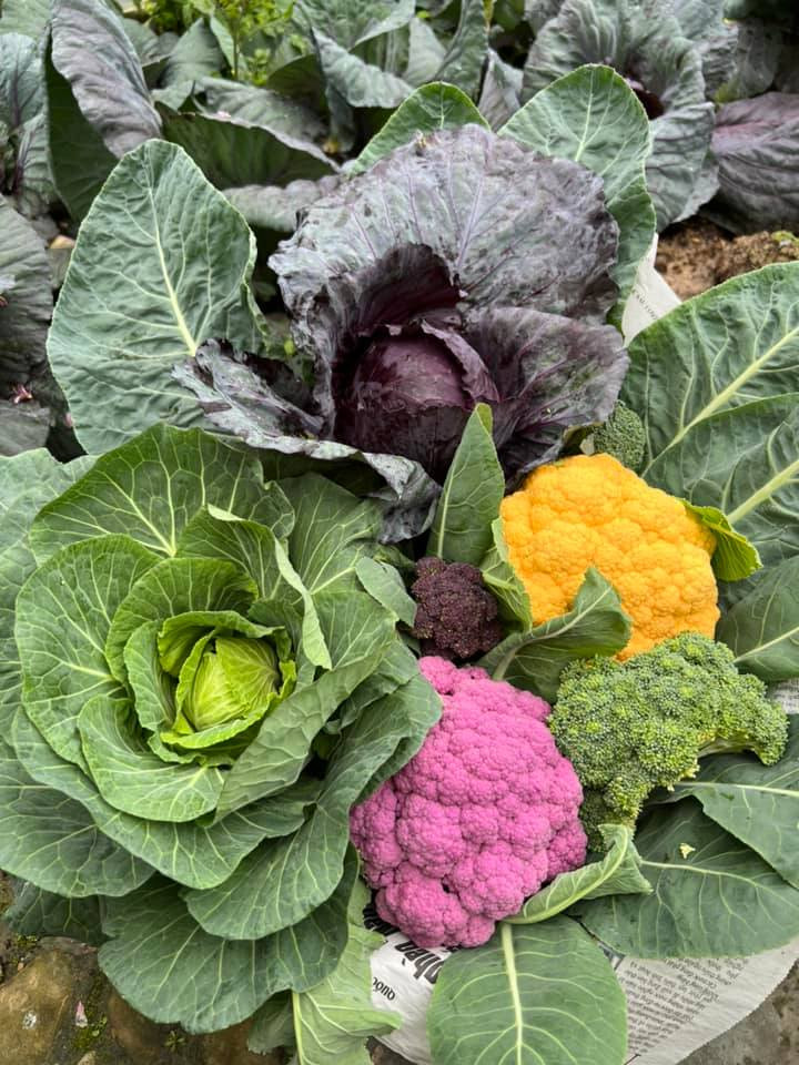 | Kết hợp nhiều loại súp lơ màu và các loại củ trong vườn. |