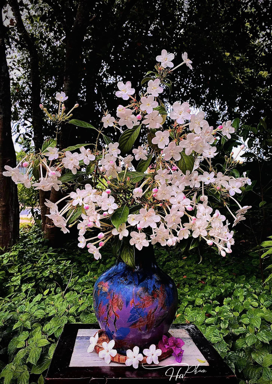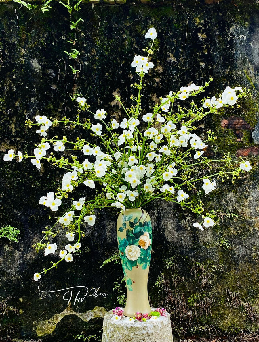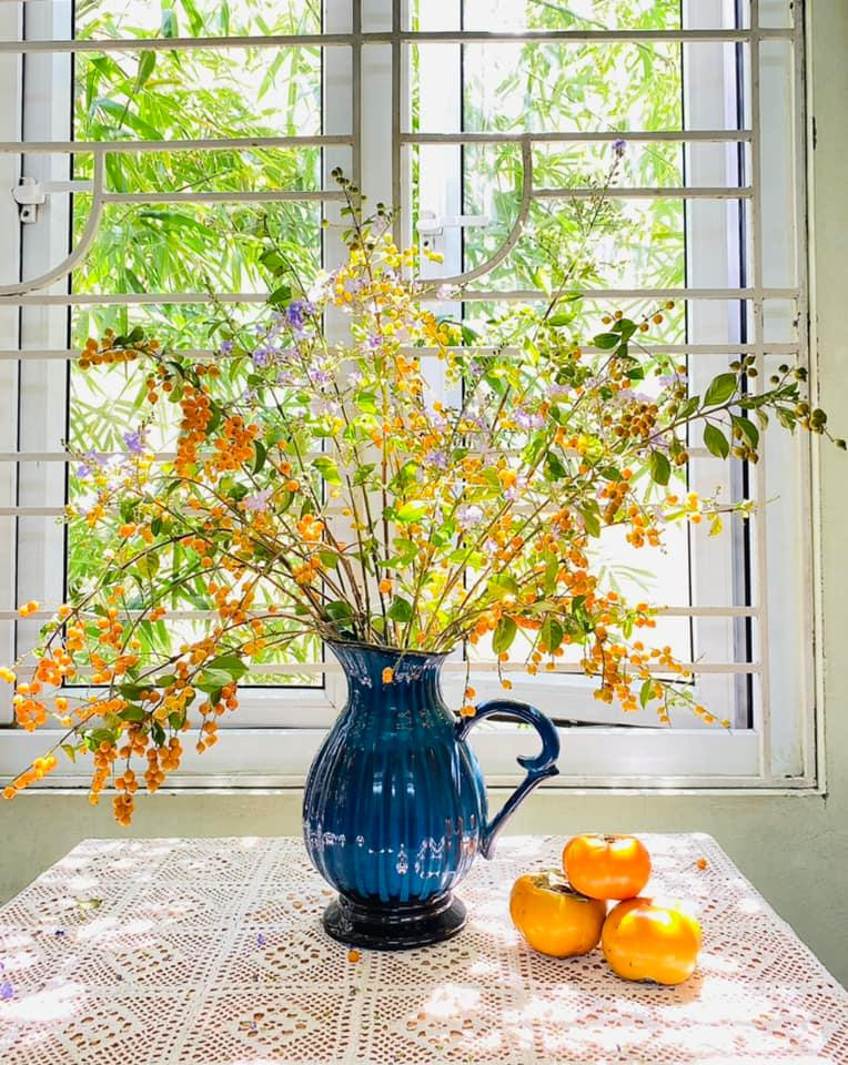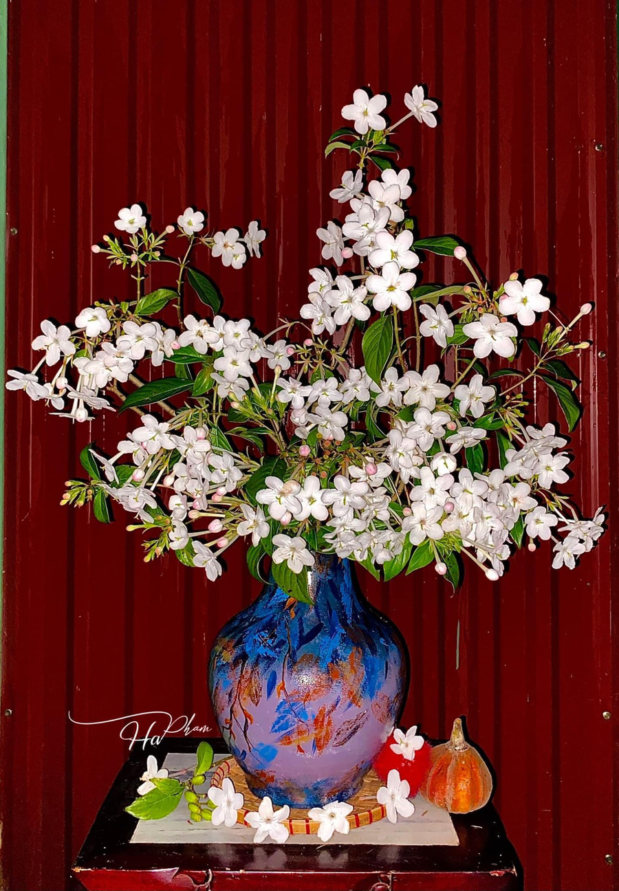 Chị Phạm Hà yêu thích cắm hoa, yêu những vẻ đẹp tự nhiên. Bởi thế, mỗi lần về quê chơi là một lần mang cả quê hương ra Hà Nội.