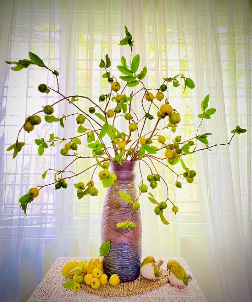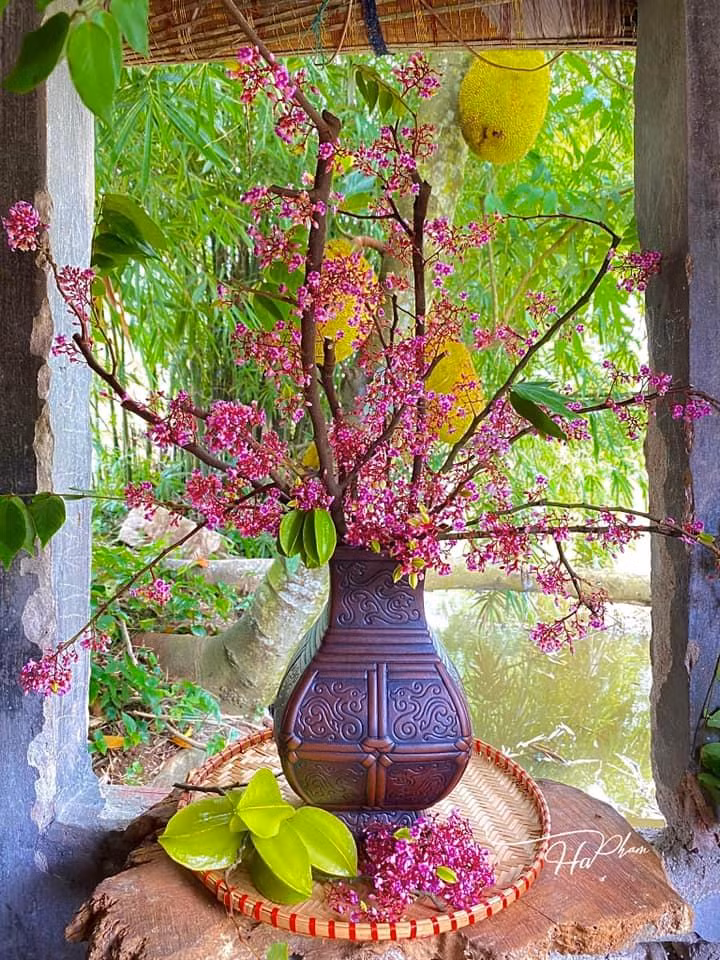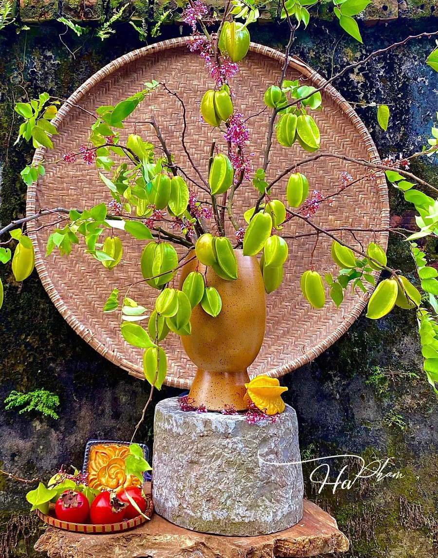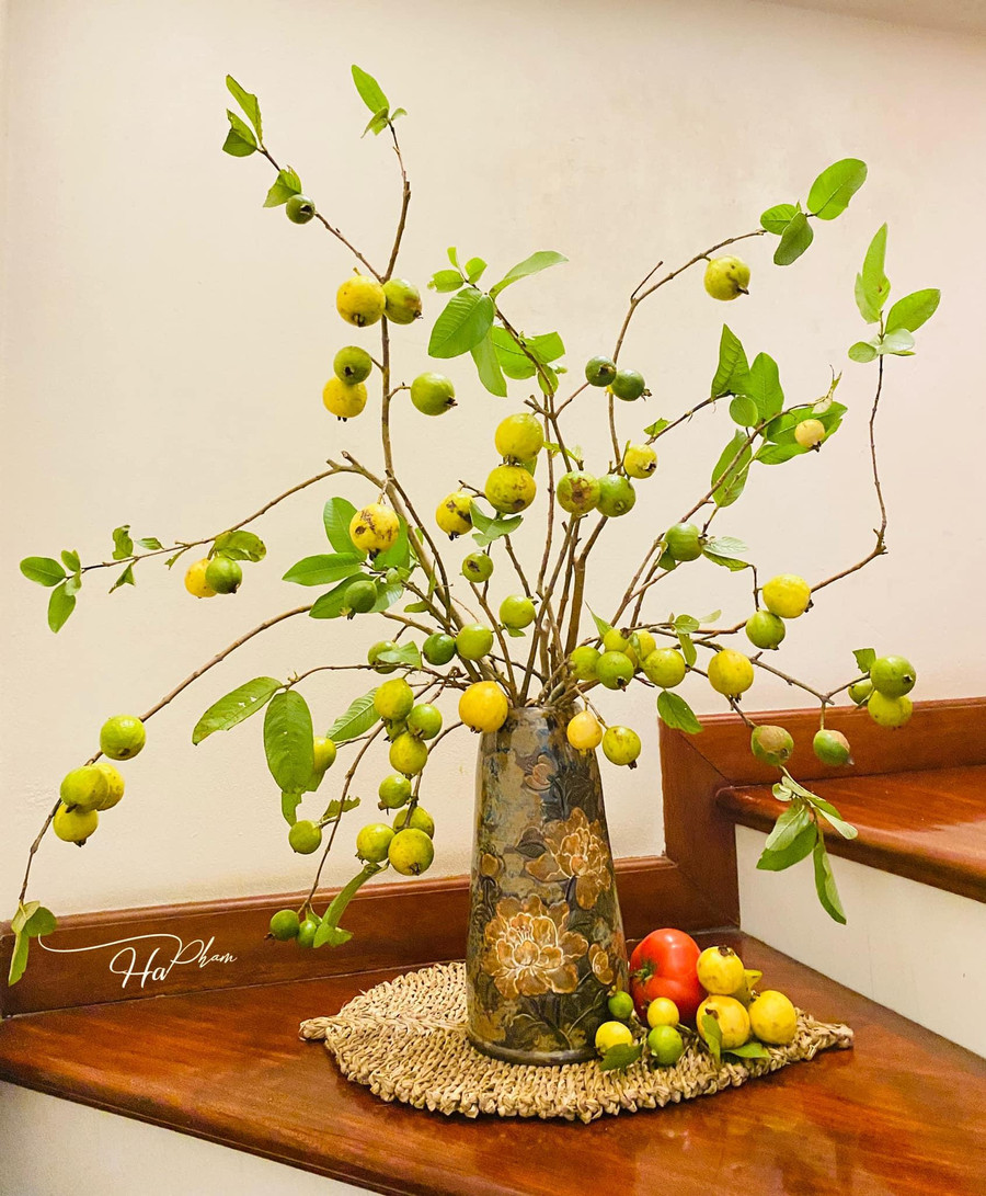 Chỉ là cành khế, chùm na, nhánh ổi… nhưng là món quà tinh thần và có thể làm nên những tác phẩm nghệ thuật vô cùng tinh tế mang đậm hồn quê. Những lúc rảnh rỗi chị Hà sẽ tự tay cắm những bình hoa thật đẹp trang trí cho căn nhà của mình thêm rực rỡ.