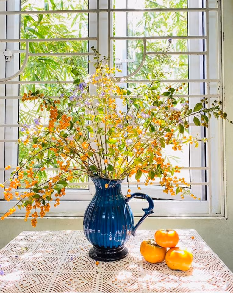 Mới đây, mẹ đảm Hà thành có đăng tải bình hoa cắm hoa dại, cành quả trong nhóm Yêu Bếp khiến hội chị em xuýt xoa khen không ngớt vì quá đẹp và độc lạ.