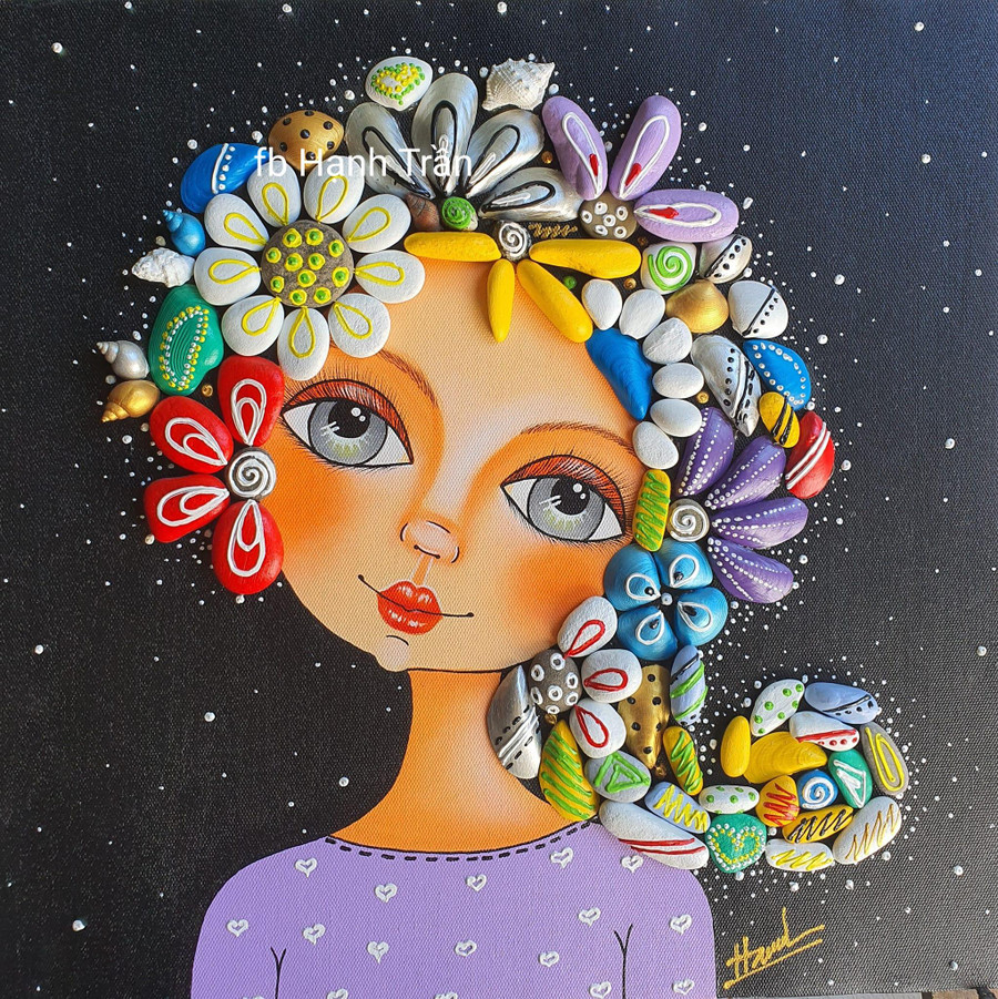 Nữ họa sĩ Trần Thị Mỹ Hạnh (SN 1985, sống tại Đà Nẵng) cho biết chị từ nhỏ, chị đã mê mẩn những mảnh vỏ ốc, cùng với những viên sỏi đủ kích cỡ. Khi có con, chị hay nhặt những viên sỏi gần nhà vẽ hình con vật cho bé chơi. Cũng từ đó, chị theo đuổi niềm đam mê "vẽ tranh" bằng sỏi.