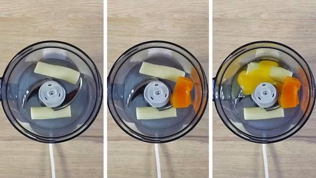 Xay cùng lúc khoai lang, bí đỏ và trứng (hoặc nước)