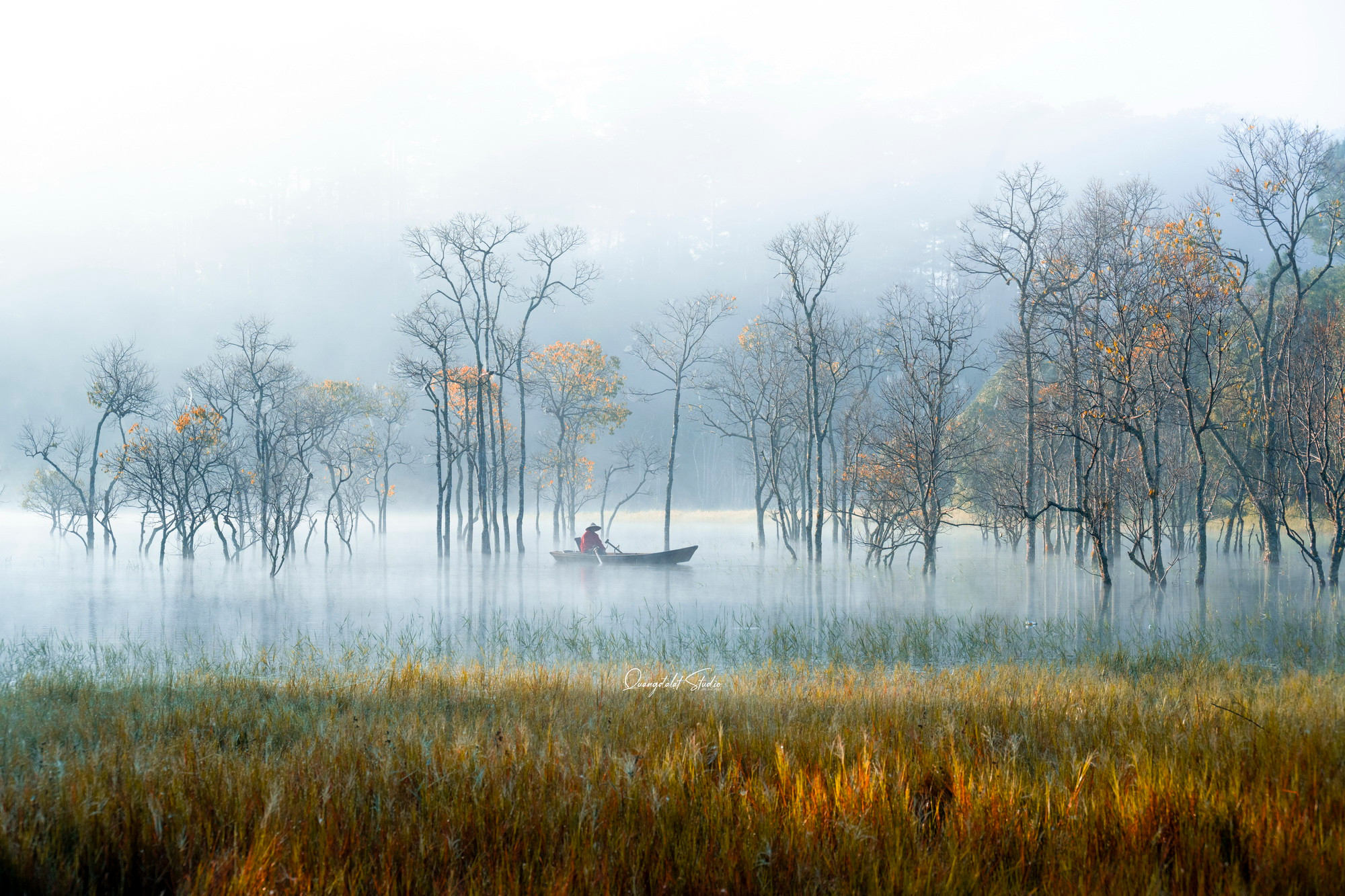 Anh Quang cho biết, bộ ảnh được anh chụp vào khoảng từ 5h đến 6h30, lúc mặt trời chưa ló dạng và sương còn trôi trên mặt hồ, xen qua những cành cây tạo nên một không gian huyền ảo.