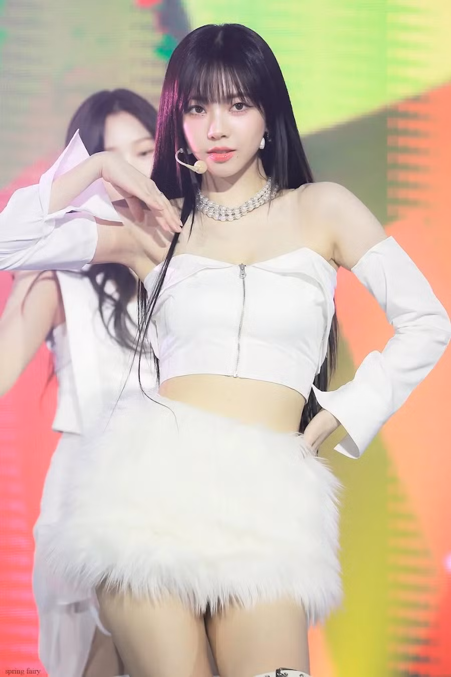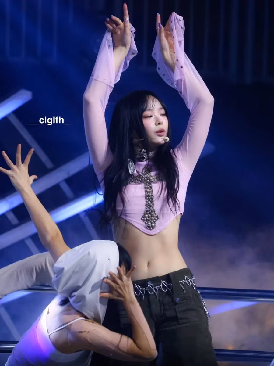 Karina của Aespa gần đây đã khoe khéo vóc dáng hoàn hảo của mình khi đứng trên sân khấu trong bộ trang phục toàn màu trắng.