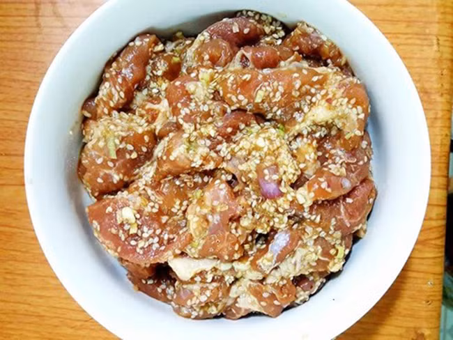 Trộn xong, lấy 1 miếng thịt cho vào chảo rán hoặc lò vi sóng quay để nếm thử xem gia vị đã vừa chưa, tùy khẩu vị từng người mà gia giảm theo ý muốn. Sau đó ướp ít nhất từ 2 – 3 tiếng. Để qua đêm sẽ ngon hơn.