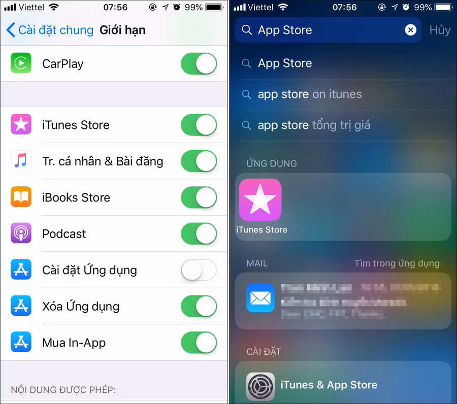 Để chặn người khác cài đặt ứng dụng từ App Store, bạn chuyển công tắc Installing Apps (Cài đặt Ứng dụng) bên dưới mục Allow (Cho phép) sang vị trí OFF (Tắt). Thao tác này sẽ xóa biểu tượng App Store khỏi màn hình chính và màn hình tìm kiếm Spotlight.