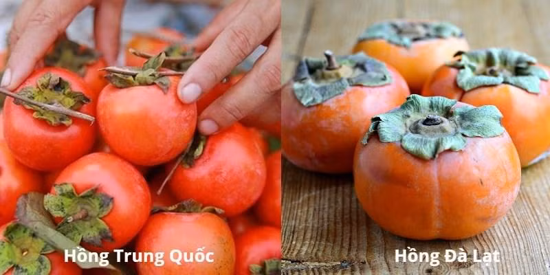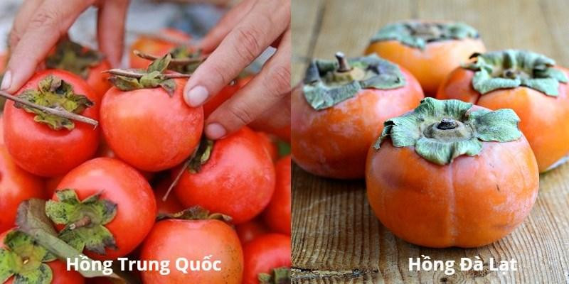 Hồng Trung Quốc sang Việt Nam cũng có nhiều loại, giá thường mềm hơn so với hàng Việt Nam. Hiện trên thị trường, Hồng Trung Quốc có loại dài, nhọn tương tự như hồng trứng Đà Lạt nhưng khi ăn không dẻo, thơm như hồng Đà Lạt. Còn có một loại thường gặp là hồng giòn, hình vuông vuông, quả to, dẹp đích thực là hàng Trung Quốc, vì thế nên chọn kỹ trước khi mua.