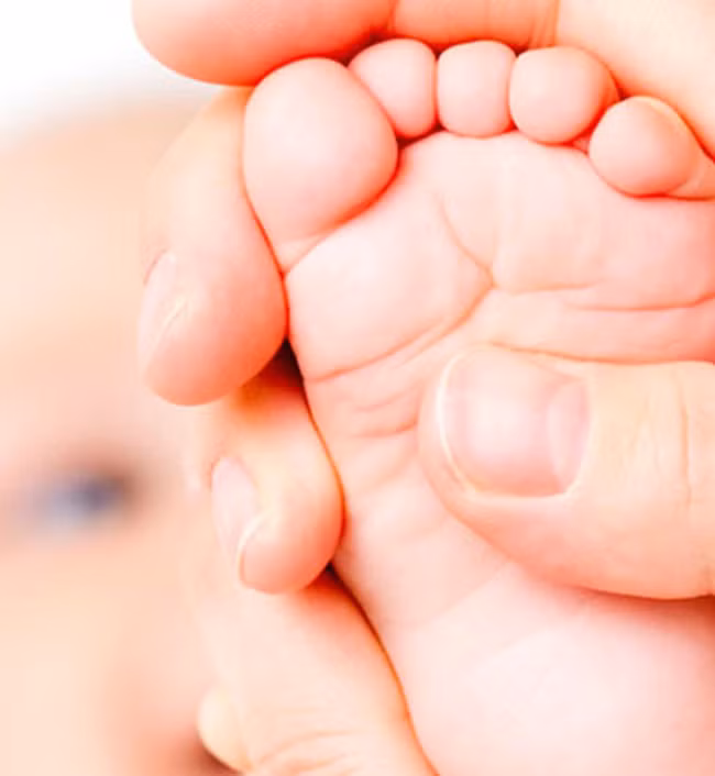 Nắn phần cổ và ống chân cho bé một cách nhẹ nhàng. Ảnh minh họa
