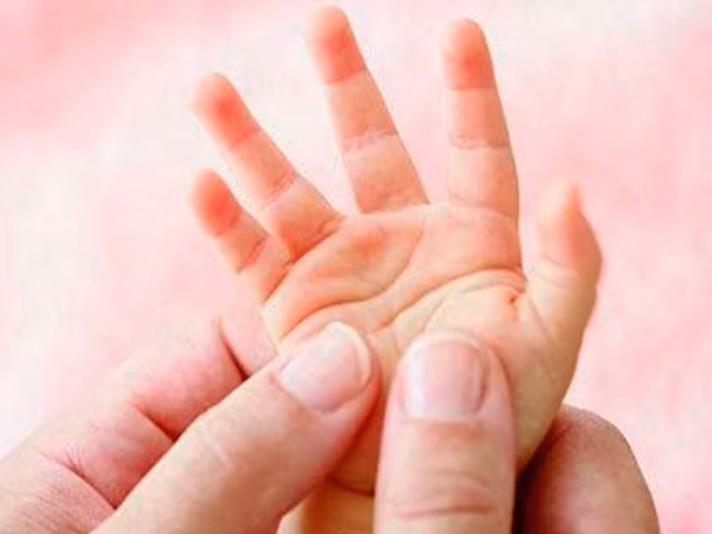 Massage nhẹ nhàng ngón và lòng bàn tay sẽ giúp trẻ cảm giác dễ chịu hơn rất nhiều. Ảnh minh họa