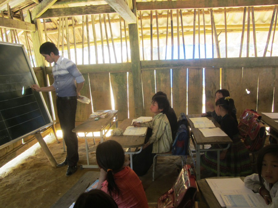 | Thầy giáo cắm bản tại điểm trường Sài Khao (Trường Tiểu học Tây Tiến, xã Mường Lý, huyện Mường Lát, Thanh Hóa). Ảnh: T.G |