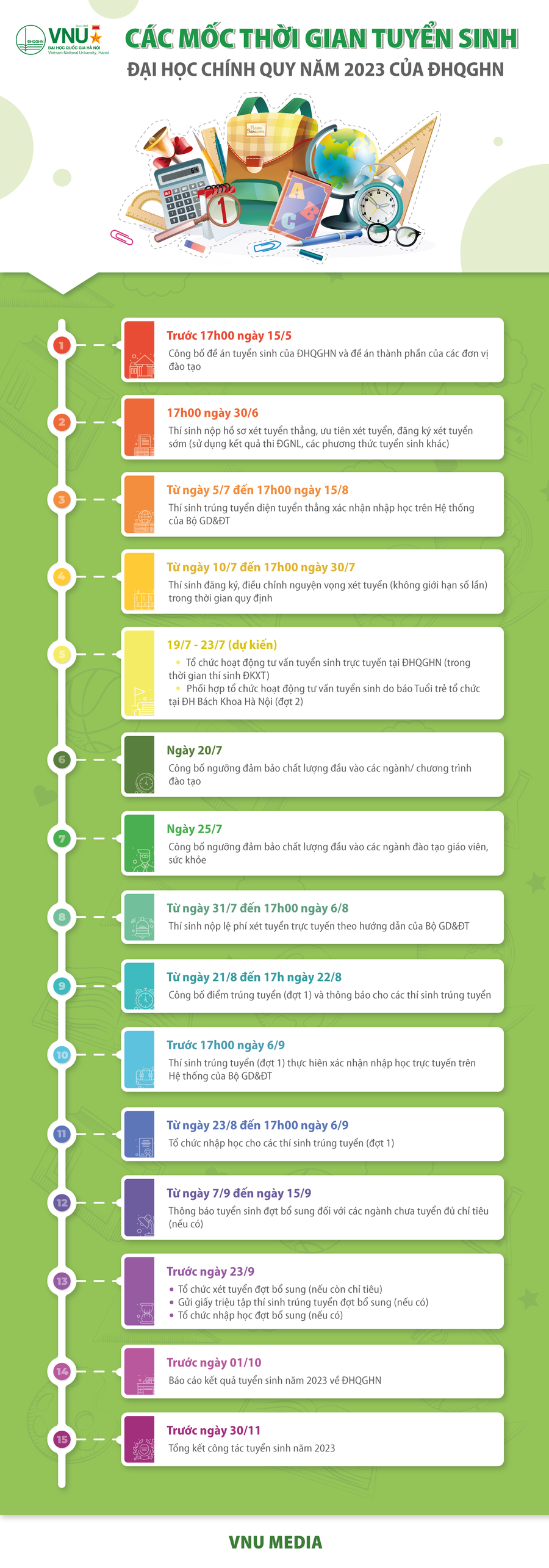 Mốc thời gian tuyển sinh đại học chính quy năm 2023 của ĐHQGHN
