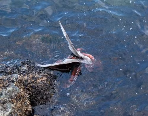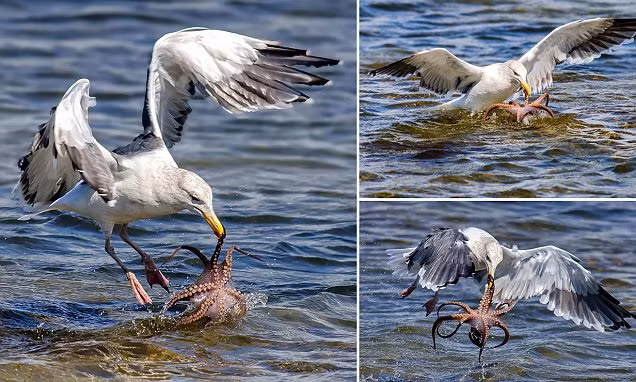 Mòng biển vật vã quyết chiến với bạch tuộc