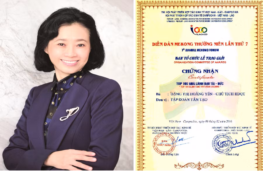 Những đóng góp của nữ Chủ tịch Tập đoàn Tân Tạo trong công cuộc phát triển kinh tế đất nước, cũng như cải cách giáo dục Việt Namđã và đang để lại nhiều thành tựu to lớn cho tập đoàn Tân Tạo nói riêng và cộng đồng xã hội nói chung. Khi tên bà được xướng lên trong danh sách”100 nhà lãnh đạo Tài- Đức”tại Diễn đàn Mekong thường niên lần thứ VII” do Hội Hợp tác phát triển kinh tế Việt Nam – Lào – Campuchia của Việt Nam (VILACAED) tổ chức,âu đó cũng là thêm 1 sự vinh danh trong hàng trăm giải thưởng danh giá mà bà đã từng được nhận.