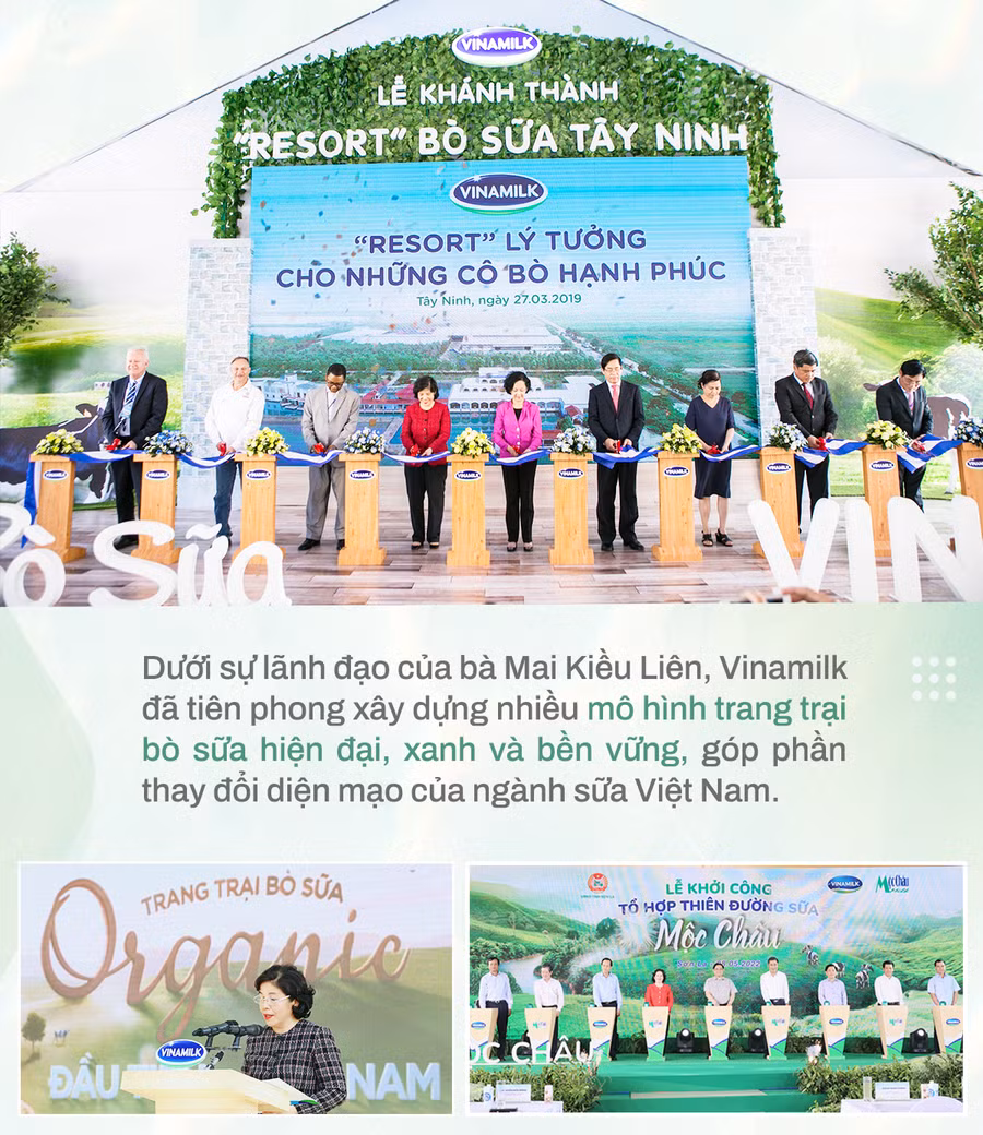 Trong suốt những năm lãnh đạo Vinamilk, bà Mai Kiều Liên vẫn giữ được "tinh thần" của một nhà khoa học khi luôn tìm tòi, nghiên cứu và phát triển các mô hình chăn nuôi bò sữa tiên tiến tại Việt Nam, đặc biệt trong việc xây dựng hệ thống các trang trại bò sữa (TTBS). Năm 2015, Vinamilk có TTBS đầu tiên đạt chứng nhận Global GAP. Năm 2016, Vinamilk cũng là công ty sở hữu trang trại chuẩn hữu cơ Châu Âu đầu tiên của Việt Nam.