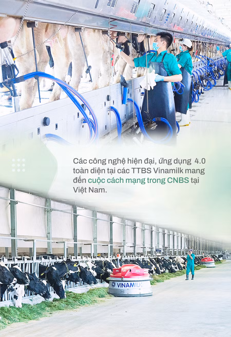 Tại các TTBS Vinamilk, lần đầu tiên, nhiều công nghệ đã được ứng dụng như: phần mềm quản lý đàn qua chip điện tử được gắn cho mỗi cá thể bò, phần mềm quản lý khẩu phần ăn, robot vun đẩy thức ăn, dàn vắt sữa tự động…