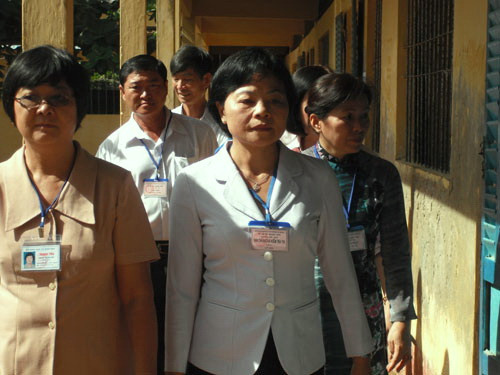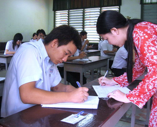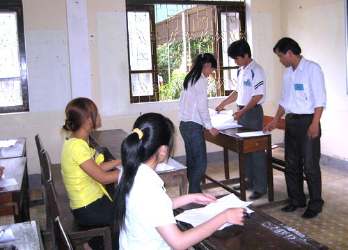 Để đảm bảo các địa phương chỉ đạo công tác thi cử nghiêm túc theo đúng chủ trương đề ra, Bộ giáo dục- Đào tạo đã cử 64 đoàn thanh tra toả đi các địa phương kiểm tra giám sát. (Ảnh chụp tại điểm thi trường Phú Tân, huyện Phú Tân, tỉnh Cà Mau)