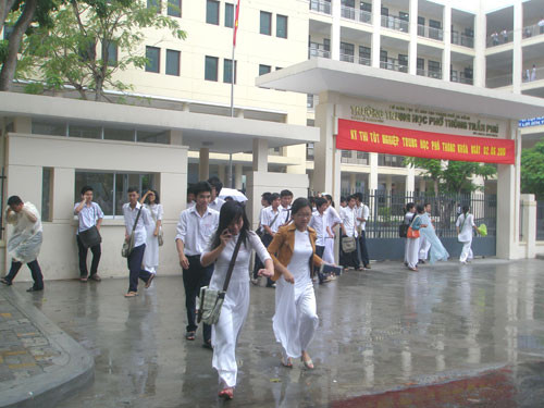Diễn ra trong 3 ngày, đến buổi thi cuối cùng 4/6, nhiều người nhận định, năm nay số đông thí sinh sẽ đỗ với số điểm thực chất khá cao. Thi đỗ tốt nghiệp THPT là mốc quan trọng để các tân tú tài bước tiếp vào các ngưỡng cửa tương lai đang rộng mở. (Ảnh chụp tại điểm trường THPT Trung Hoà Nhân Chính ngày 4/6)