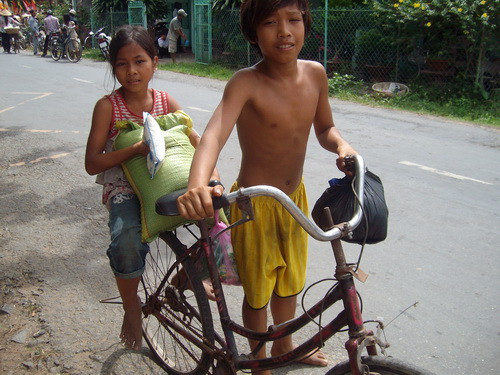 Không chỉ niềm vui hiện lên nét mặc của những cụ già chúng tôi còn bắt gặp được những đứa trẻ tỏ ra rất sung sướng, hài lòng khi nhận được những bộ quần áo mới mà các em hằng mong ước bấy lâu nay mà không có tiền mua nó, nay được nhà chùa phát cho các em vui mừng khôn xiết.