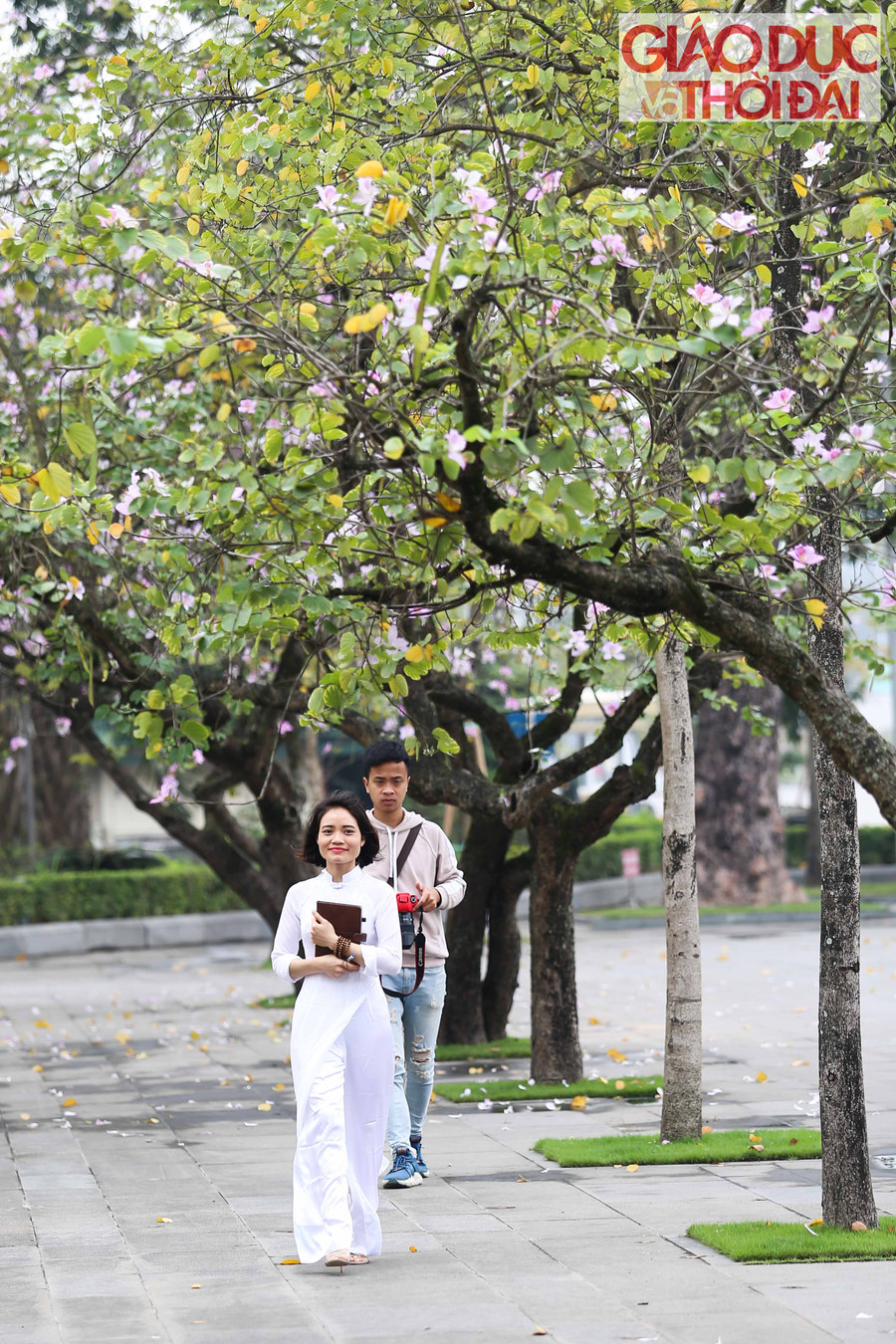 | Nhiều bạn trẻ tranh thủ chụp ảnh với hoa ban |