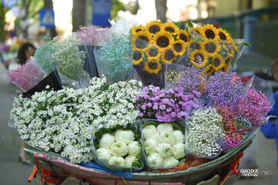 | Vào những ngày này, trên nhiều tuyến phố tại Hà Nội những xe chở đầy hoa đẹp lung linh dưới cái nắng mùa thu. |