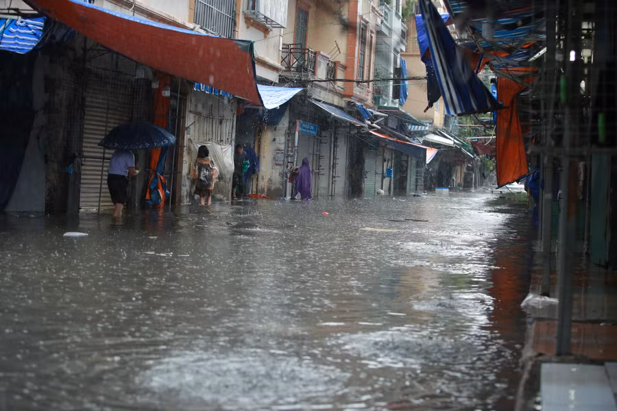 | Trong sáng ngày hôm nay nhiều tuyến đường tại Hà Nội bỗng biến thành 'sông'. |