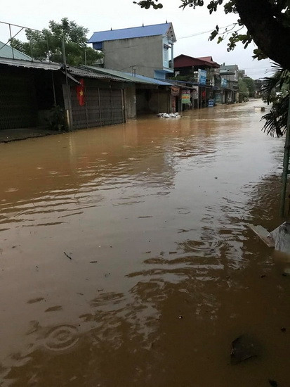 | Khu vực Ngã tư san nền ngập đến ngang thắt lưng. |