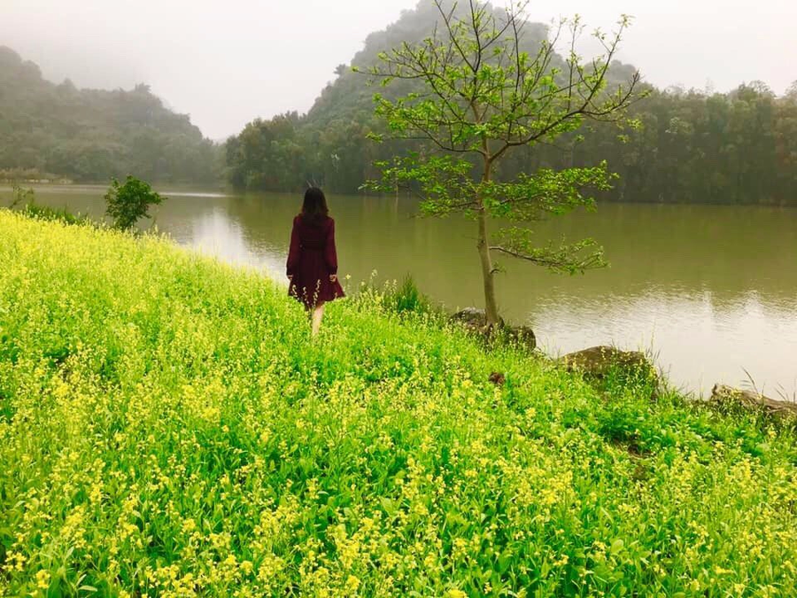 Cuối tháng 12, những cánh đồng hoa cải ở Thung Nham đua nhau nở rộ khoe sắc vàng, tạo nên một khung cảnh rực rỡ. Bên cạnh phong cảnh của sơn thuỷ hữu tình làm nao lòng du khách.