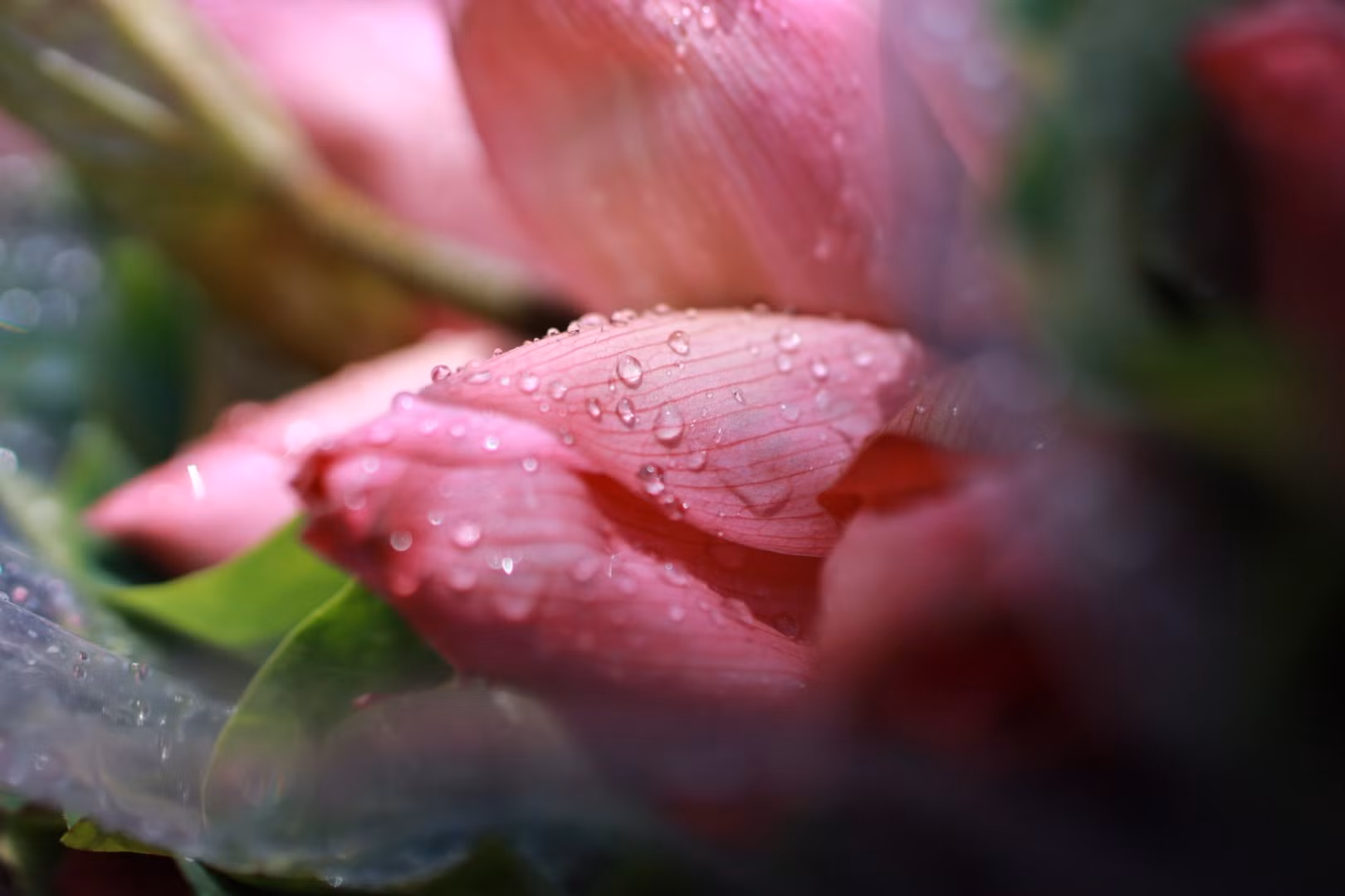 Cánh hoa màu hồng cùng với sắc lá xanh trông như có vẻ đối lập nhưng cũng lại rất hài hòa.