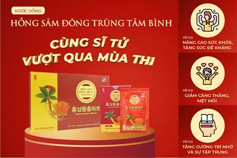 Hồng sâm Đông trùng Tâm Bình là sản phẩm phù hợp để cha mẹ bồi bổ cho con trong mùa thi, giúp các sĩ tử nâng cao sức khỏe tổng thể, giảm căng thẳng, mệt mỏi, tăng trí nhớ và sự tập trung để học tập và thi cử hiệu quả.