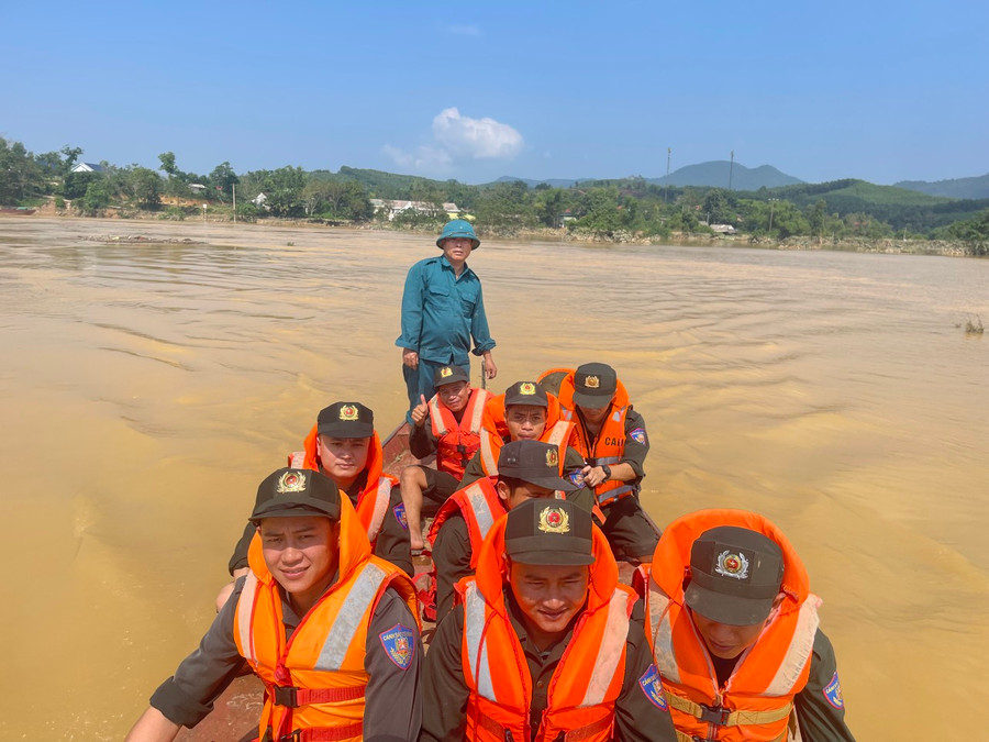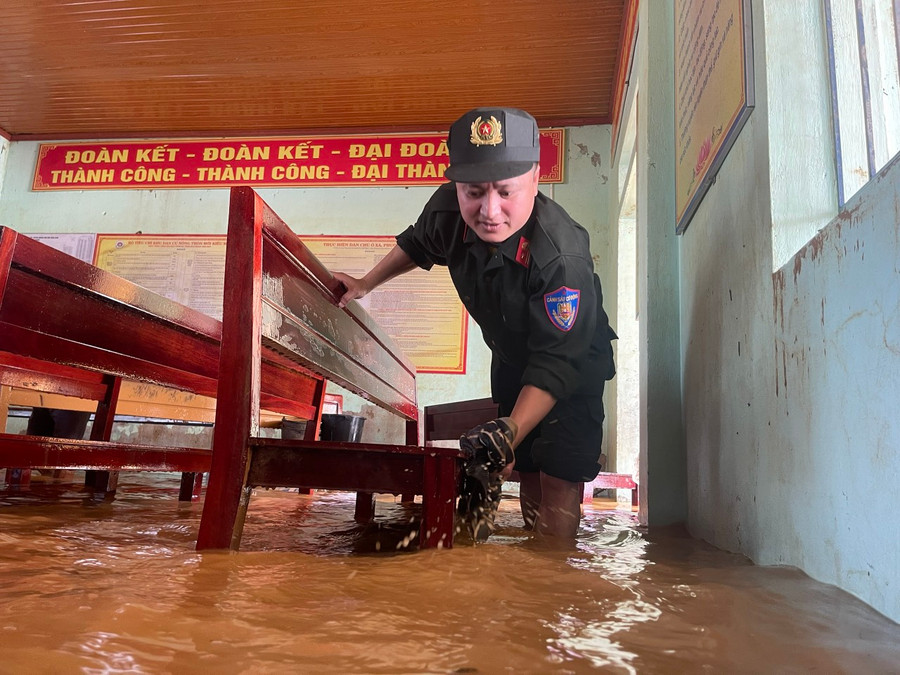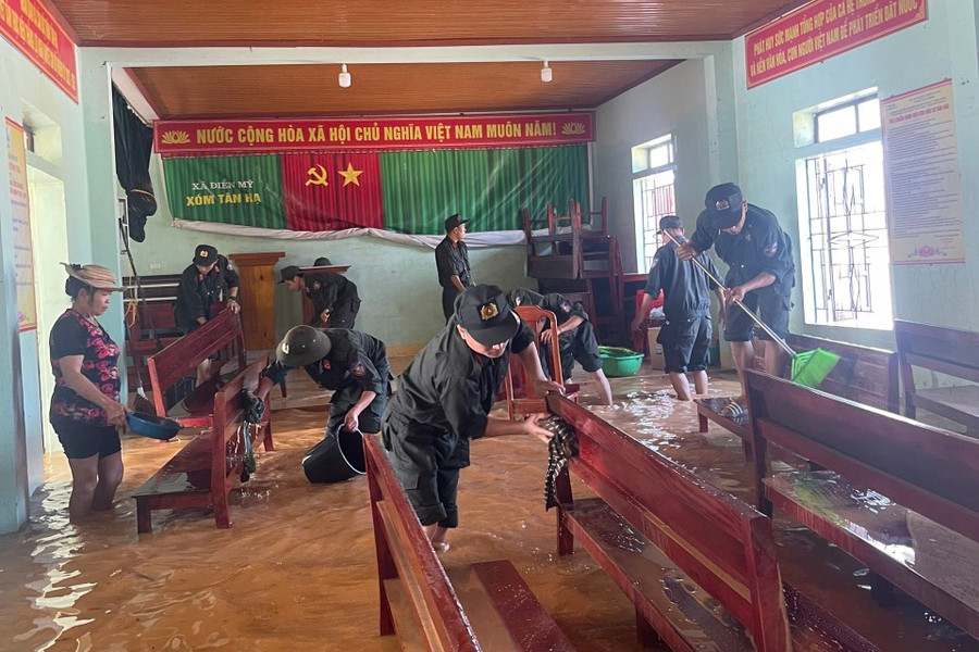 | Cán bộ, chiến sĩ Trung đoàn CSCĐ Bắc Trung Bộ xuống các địa phương ở Hà Tĩnh giúp người người dân khắc phục hậu quả mưa lũ. (Ảnh: CAND) |