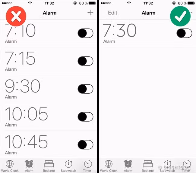 Trì hoãn chuông báo thức. Cứ 15 phút một lần bạn lại đánh vật với chiếc đồng hồ báo thức sẽ không mang lại lợi ích gì. Làm như vậy bạn sẽ lại rơi vào giấc ngủ và khi thức giấc còn mệt mỏi hơn. Tốt nhất là đặt chuông báo thức đúng vào lúc bạn phải thức dậy và rèn luyện sự quyết tâm của mình.